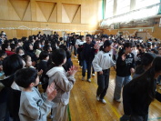 最後の大会に向けて、激励会を行いました。インフルエンザが猛威を振るっているため、6年生だけが体育館に入りTeamsによるオンライン配信になりました。5年生の応援団や4年生以下の声が窓から聞こえてきて、離れていても応援している気持ちが十分伝わってきました。