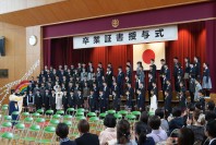 第81回卒業証書授与式を行い、91名の卒業生一人一人に証書を渡すことができました。卒業生による呼びかけでは、堂々とした大きな声でセリフを言い、すばらしい歌声を響かせることができました。学級卒業式では、担任の先生へ一言ずつメッセージを伝え、最後の別れを惜しむ様子が見られました。最後は5年生と先生たちに見送られながら、卒業生たちは、笑顔いっぱいで巣立っていきました。