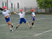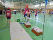 5・6年生の体育で、陸上競技を行っています。5年生はボール投げと立ち幅跳びの練習をしていました。6年生はハードル走の練習をしています。5年生も6年生も、投げるときや走るときのフォームを友だちとアドバイスし合って、どんどん記録を伸ばしていました。