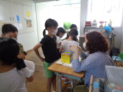 英語コーナーではボランティアのお母さんや先生たちと英語で会話をしたり、遊んだりしています。今日は、好きなことを聞かれてyesやnoで答えたり、英語でじゃんけんをしたりして楽しく遊んでいました。