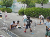 | 1年生の生活科の授業でシャボン玉を飛ばしました |