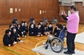 6年生が、低学年に刈谷体操のポイントを教えています。