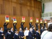 今日は、4つのふれあいチームの代表が、それぞれの「チーム旗」と「がんばりたいこと」を発表しました。