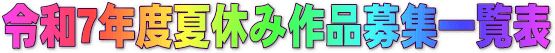 | 7/15 | 夏休み作品募集一覧表を追加しました 【令和7年度 夏休み作品募集一覧】 |