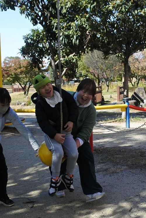 学校にはない大きな遊具で思いっきり楽しみました。