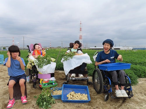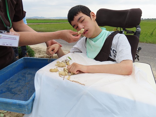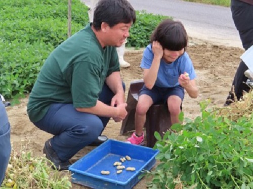 落花生の香りを嗅いだり、手ざわりを感じたりしながら、たくさん収穫することができました。