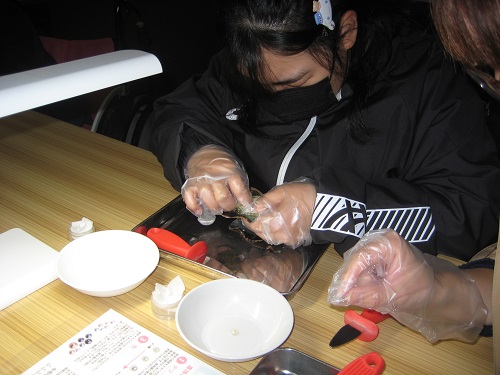 3日目は、三重県真珠で、真珠の取り出し体験に取り組み、