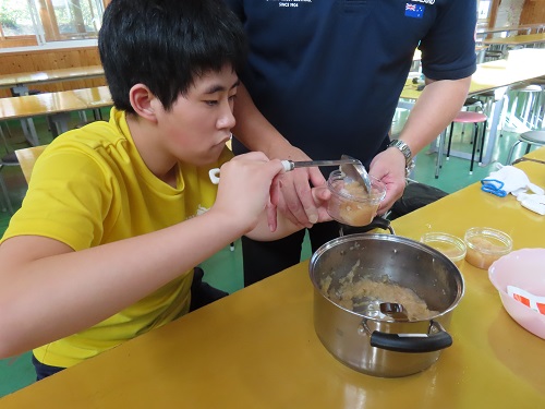 1日目はりんご農園でりんごジャムを作りました。