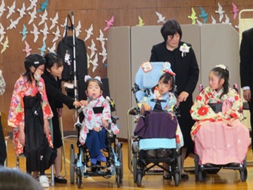 受付では、小学部と中学部の児童生徒が笑顔で対応しました。
