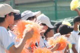 応援リーダー中心に、夏休み中に考えた応援を学級の仲間に伝えていました。